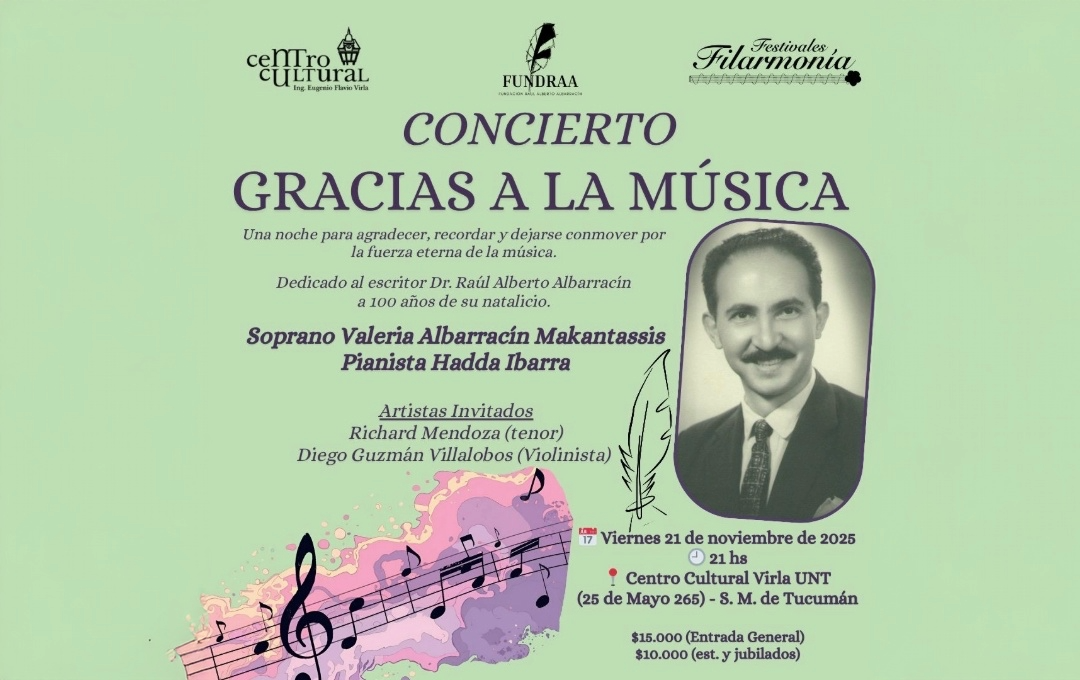 sábado 8 de noviembre de 2025 19:00 Centro Cultural Virla - 25 de Mayo 265 - TUCUMAN