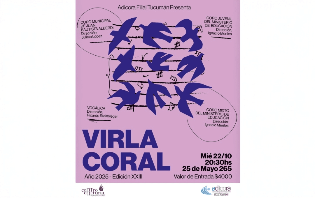 sábado 8 de noviembre de 2025 23:00 Centro Cultural Virla - 25 de Mayo 265 - TUCUMAN